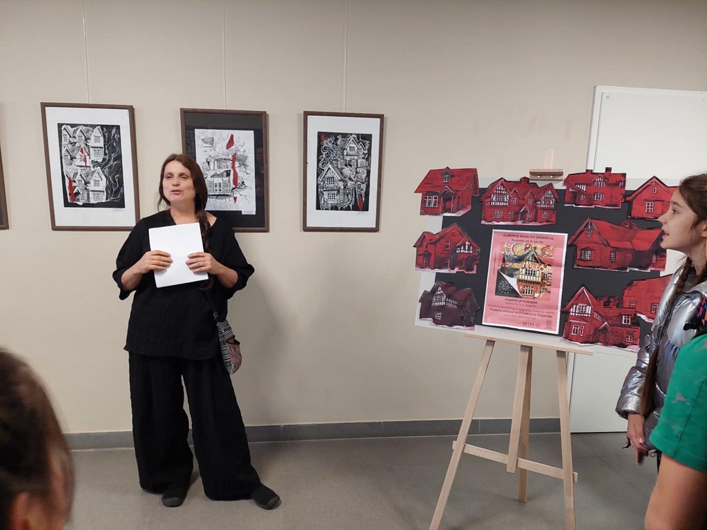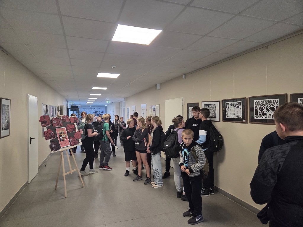 Parodoje mokiniai pristatė savo kūrybinius darbus – fotografijų koliažus, kuriuose fiksuoti ne tik pastatų vaizdai, bet ir jų smulkiausios detalės: dekoratyvūs frontonai, fachverkinės sienos, langų formos. Lankytojai žavėjosi, kaip jauni žmonės geba atidžiai pastebėti architektūros grožį ir jį kūrybiškai interpretuoti.